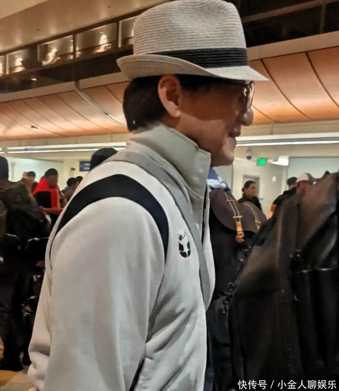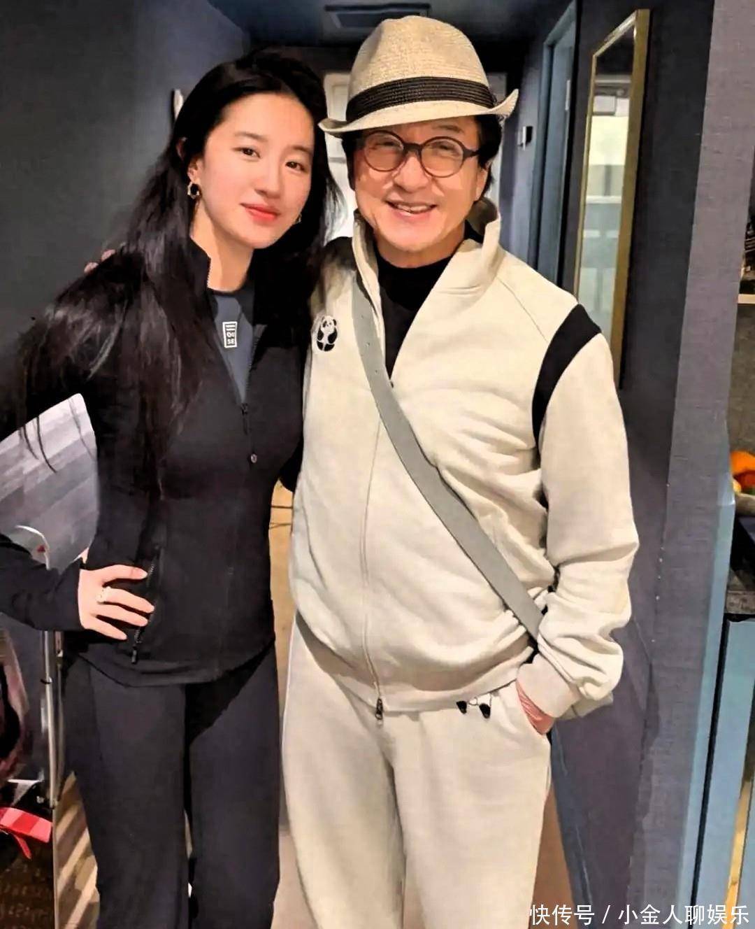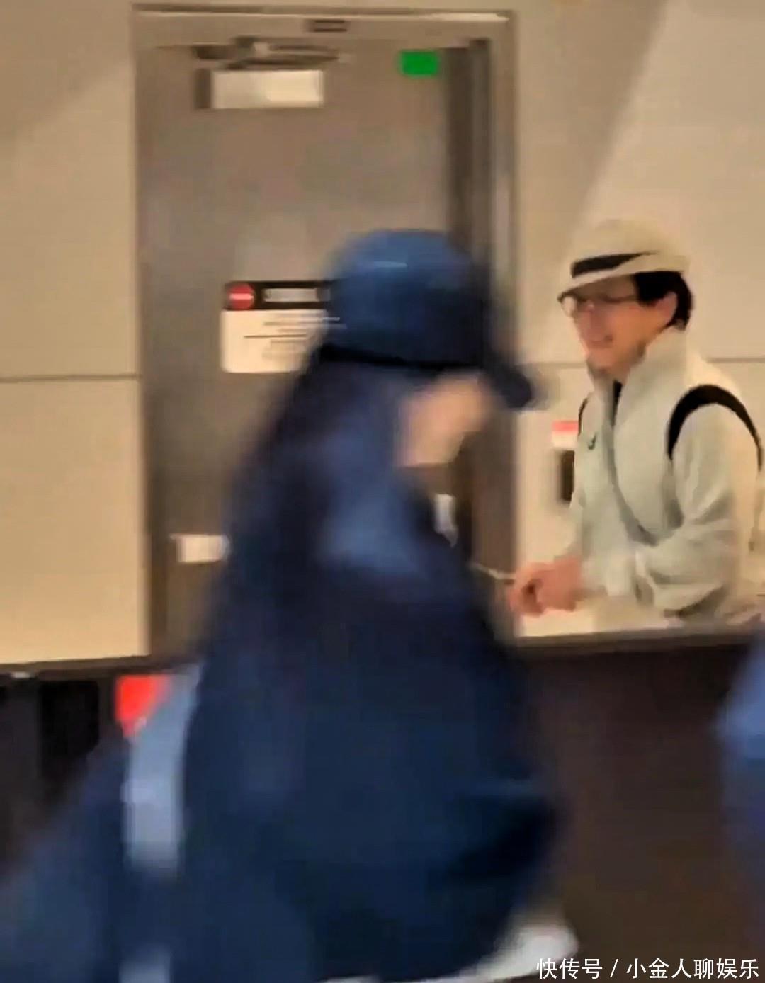国际机场的玻璃幕墙切割着午后的阳光。人群像潮水般流动,黑色披肩在刘亦菲肩上翻飞。她走向登机口的步伐带着女演员特有的节奏感,素颜的脸在逆光中泛着珍珠般的光泽。成龙从另一个方向出现,白色运动服上的熊猫图案随着他的动作微微晃动。