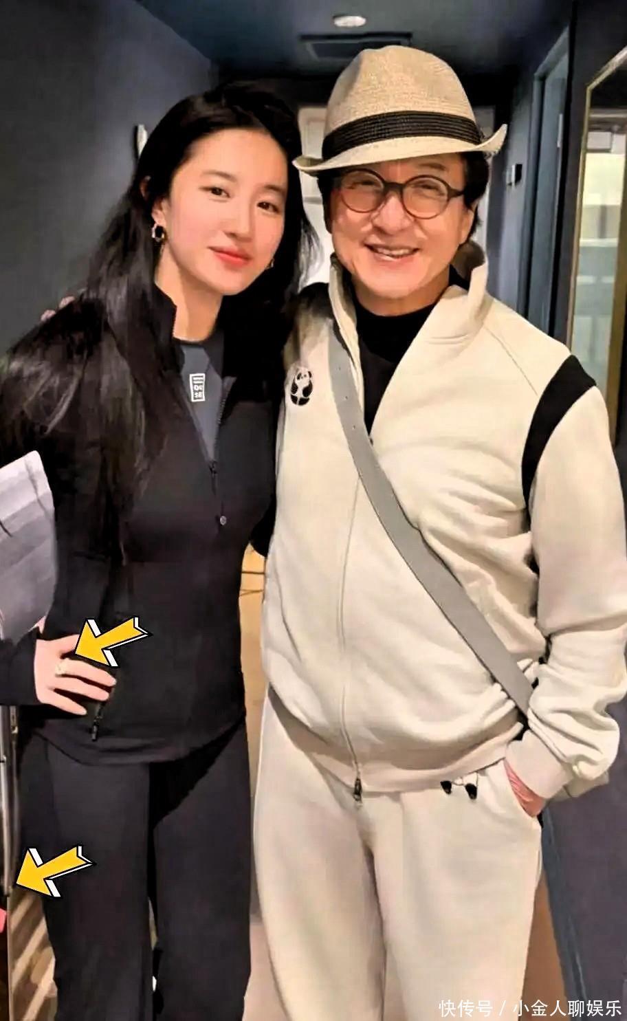 成龙刘亦菲机场搂肩合影!素颜穿紧身裤身材惊艳